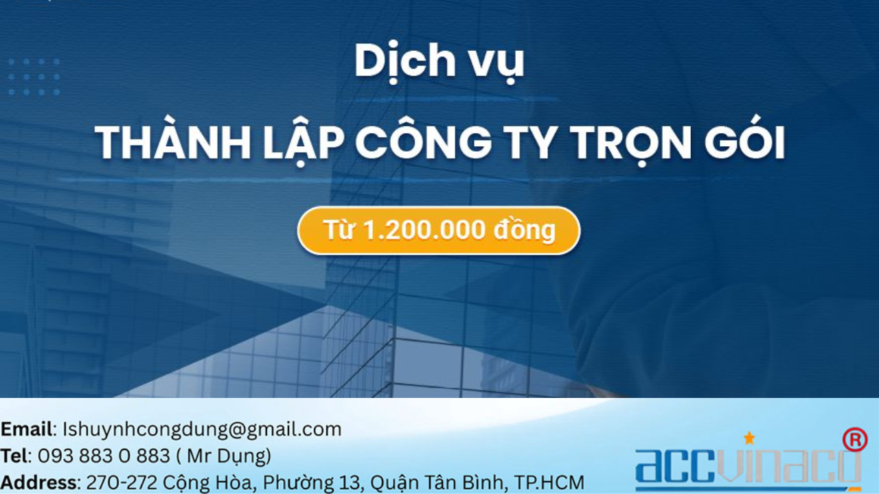 Bảng báo giá dịch vụ đăng ký thành lập công ty trọn gói TPHCM tại ACCVINACO